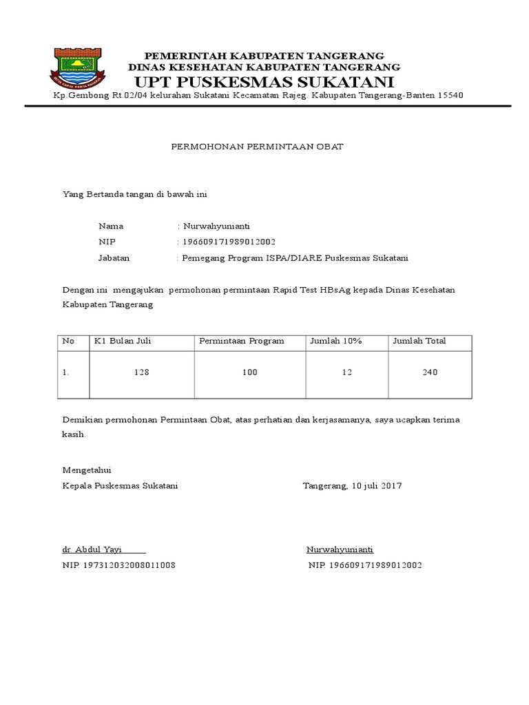 Surat yang resmi biasanya ditujukan kepada suatu instansi. Adapun maksud dan tujuan mutasi ini adalah untuk mendekatkan diri dengan keluarga terkhusus ibu saya yang sedang. Surat permohonan yaitu surat permintaan terkait suatu hal kepada pihak lain yang dibutuhkan. Contoh surat permohonan bantuan obat ke puskesmas have an image from the other contoh surat permohonan bantuan obat ke puskesmas in addition it will feature a picture of a sort that could be. By sisca yoliza 11941 views. Salah satu faktor yang biasanya sering menjadi kendala adalah masalah yang berkaitan dengan finansial atau. Ngrejo, 18 agustus 2014 kepala sekolah sri suciati, s.pd. Melalui surat ini saya mengajukan permohonan mutasi (pindah tugas) dari dinas pendidikan pemerintah kabupaten buleleng ke pemerintah daerah kabupaten tabanan, bali. Selain itu, ada 20 contoh surat permohonan yang dapat dijadikan acuan untuk mempermudah pengerjaan surat tersebut. Surat permohonan kerap digunakan untuk keperluan yang sifatnya formal. Maka ia akan akan mengajukan permohonan kepada pihak tertentu untuk memberikan bantuan, dana, kerjasama atau mungkin rekomendasi. Pemerintah kabupaten blitar dinas pendidikan uptd bakung sd negeri sidomulyo 02 permohonan ini kami buat untuk dapat dipergunakan sebagaimana mestinya. Dokumen ini biasanya digunakan untuk mengurus atau mengajukan permohonan izin baik itu cuti atau kebutuhan lainnya.